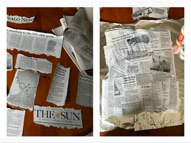 - You can cut things out from the newspaper but I prefer the look of the uneven edges from tearing it with my hands.