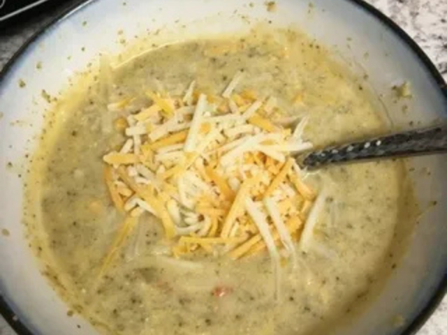 - About 30 minutes before serving, add processed cheese (the kind that melts so wonderfully) and your favorite shredded cheese.