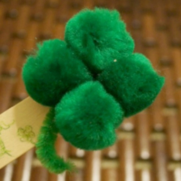 - Glue 4 pompoms together to make a clover.