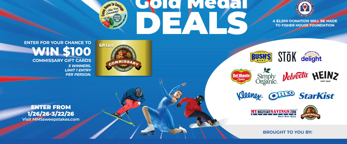 There’s also a fun bonus: while you’re shopping, you can enter the Gold Medal Deals Sweepstakes at MMSSweepstakes.com for a chance to win. Five lucky winners will each receive a $100 Commissary gift card….which honestly is the ultimate pantry restock prize.