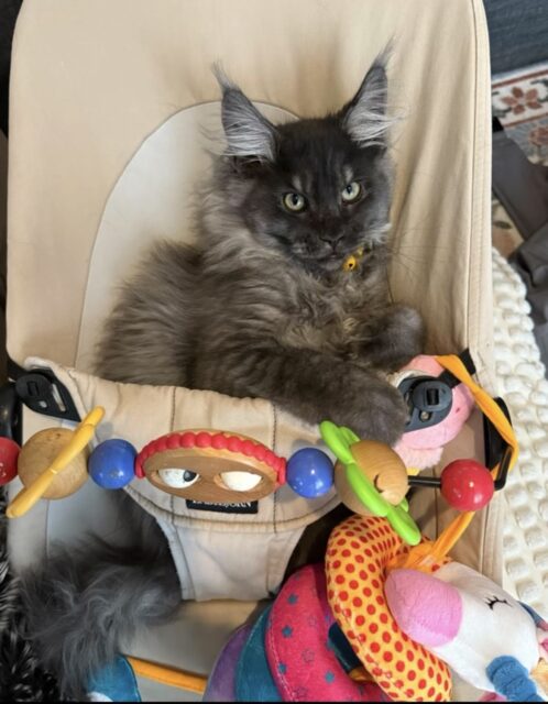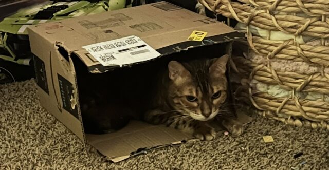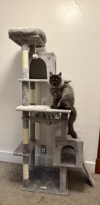 We’ve also purchased a few cat furniture pieces. This is a great way to give your pet a chance to utilize their natural instincts of climbing! We have a new cat tree that Macaroni can’t get enough of. We have a few cats in our household, so we do have multiple cat trees in our home. This is nice because Macaroni is a little much for my senior kitties at times. Everyone has their own space to explore and play! Don’t want to invest in a big cat tree? Try cutting a few holes in a cardboard box! I don’t think I’ve ever seen my cats turn down a new box to explore and play with. Crinkle up some packing paper and you will keep the entertained for at least a few hours!