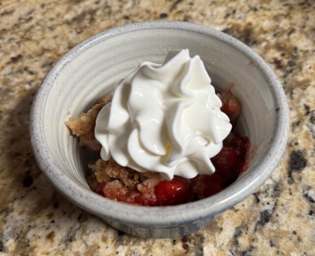 In our house, there is nothing better than a a warm piece of cherry pie, but sometimes I do not have the band width to even pull out the premade pie crust and bake. Lucky for me, I found this great recipe when I was in college and use it whenever I wake up and I’m craving a comforting dessert that will be ready by dinner. For this Crockpot Cobbler, all you need is your favorite pie filling, cake (or even muffin) mix, and butter. You can use any kind of cake mix, but I highly recommend trying it with this Cinnamon Streusel Muffin mix. I just tried this out in my latest attempt with cherry pie filling and it was ~Chef’s Kiss~!