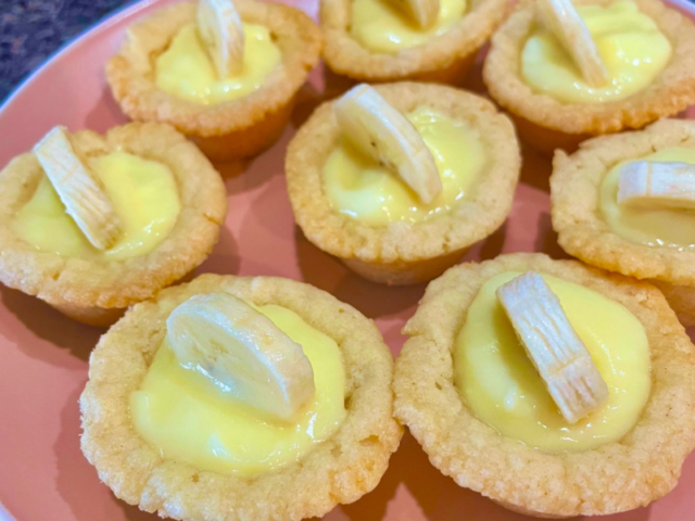- Top each cookie cup with a sliced banana or whipped topping (optional).
