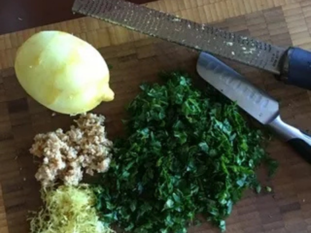 Gremolata is a condiment consisting of chopped parsley, garlic, and lemon zest. It’s my new obsession! You can serve gremolata over anything for a burst of tasty freshness. It’s especially great over the winter with those heavy root vegetables in season!