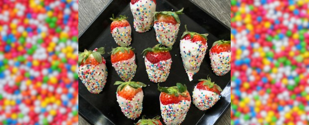 - Immediately decorate with Rainbow Sprinkles/Nonpareils while the White Chocolate is still soft.