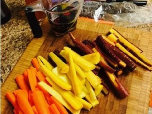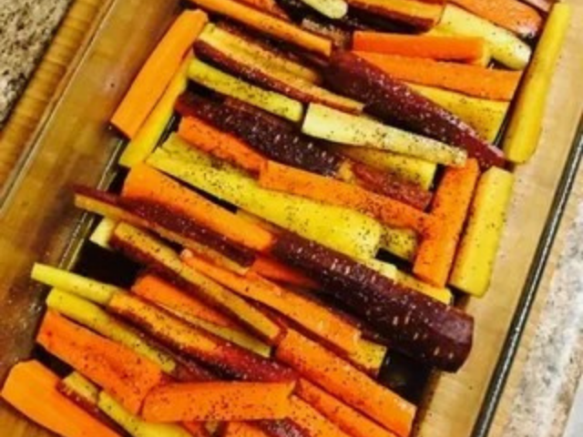 If you’re looking for a quick and easy side dish to beef up your big holiday meal, look no further! These roasted rainbow carrots are baked in a balsamic and honey glaze so not only do they look beautiful, they taste amazing! If you can’t find rainbow carrots at your local grocery store, don’t worry! Regular carrots work just as well!