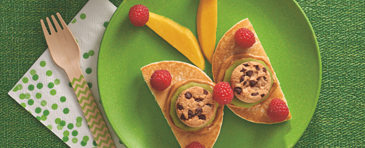 After all these years I can still remember the creative and thoughtful things my mom did for me, and you can create lasting memories as well. This recipe is sure to become a new family favorite. Make breakfast extra special and start the school day off right with these fun and easy pancakes! These frozen pancakes are topped with peanut butter, fresh fruit and mini chocolate chip cookies.