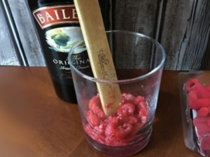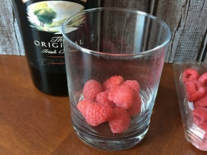 - Toss 6-8 raspberries in the bottom of a glass.
