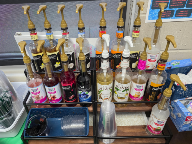 - Add the drink mix(es) and/or the syrup to the 32 oz. cup.