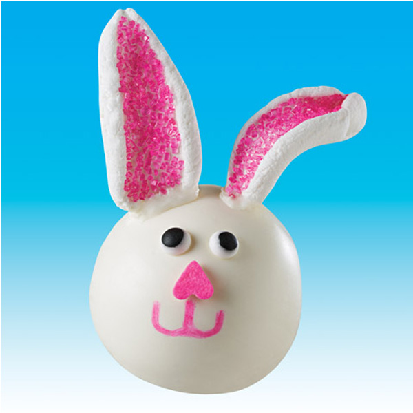 - Immediately press 2 marshmallow pieces into chocolate on top of each ball for the bunny’s ears.
