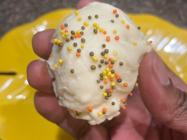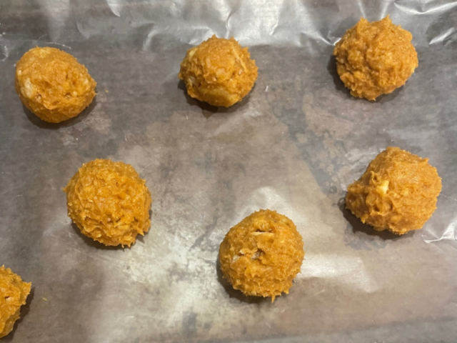 • Using the cookie scoop or spoon, spoon your mixture into balls and place on a baking sheet lined with parchment paper.