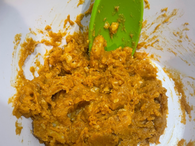• Crumble your pie into a bowl; using a mixer or spoon blend the pie mixture until smooth.