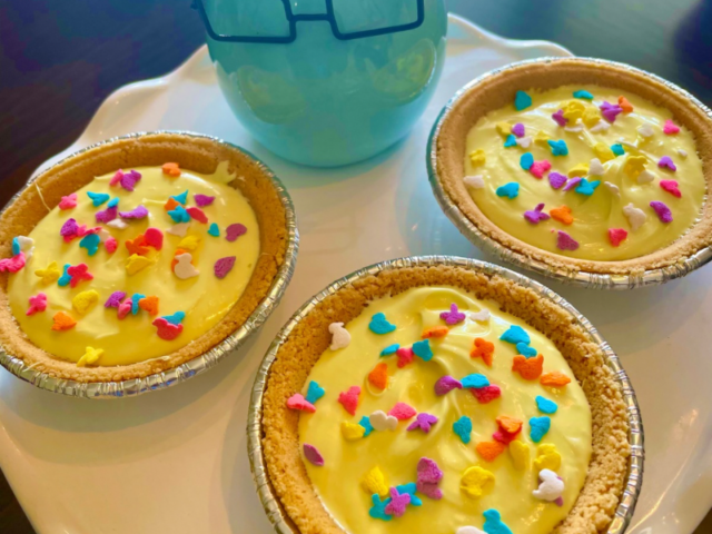 - Spoon frosting into graham cracker crusts and top with sprinkles.